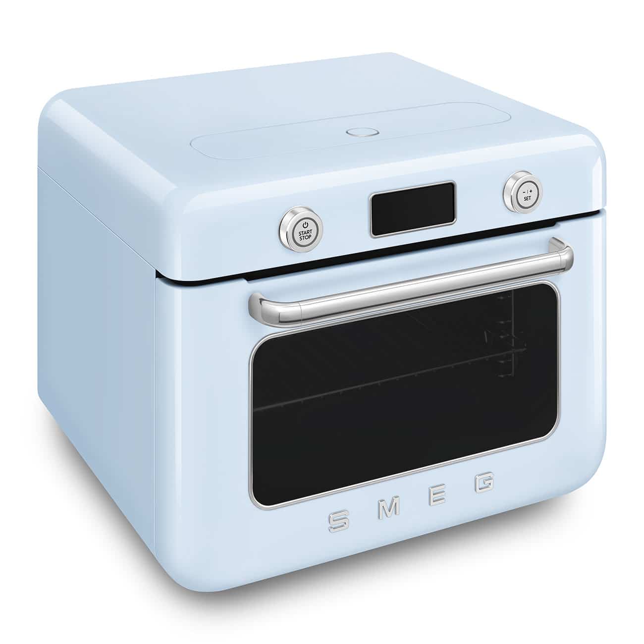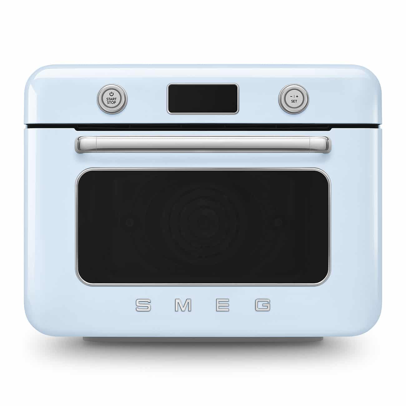 Kombi-Tisch-Dampfbackofen, Pastellblau, Multifunktion, Umluft, Grill, 3 Garebenen, Kombiniertes und reines Dampfgaren 70-100%, LCD-Display, Tank, 0,8 l, Autom-Programme: Air-Fry, Warmhalten, Auftauen, 30 Rezepte, Garraumvolumen: 30 l